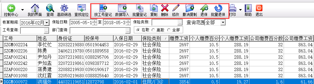 可批量登記,或者外部excel導(dǎo)入,也可從上月復(fù)制,退保可批量退保;